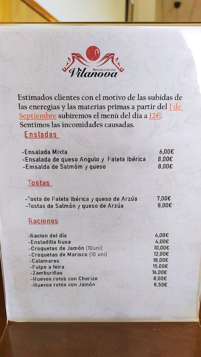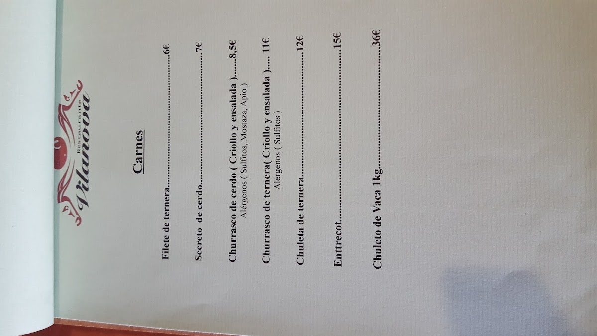 Parrillada Vilanova Menu